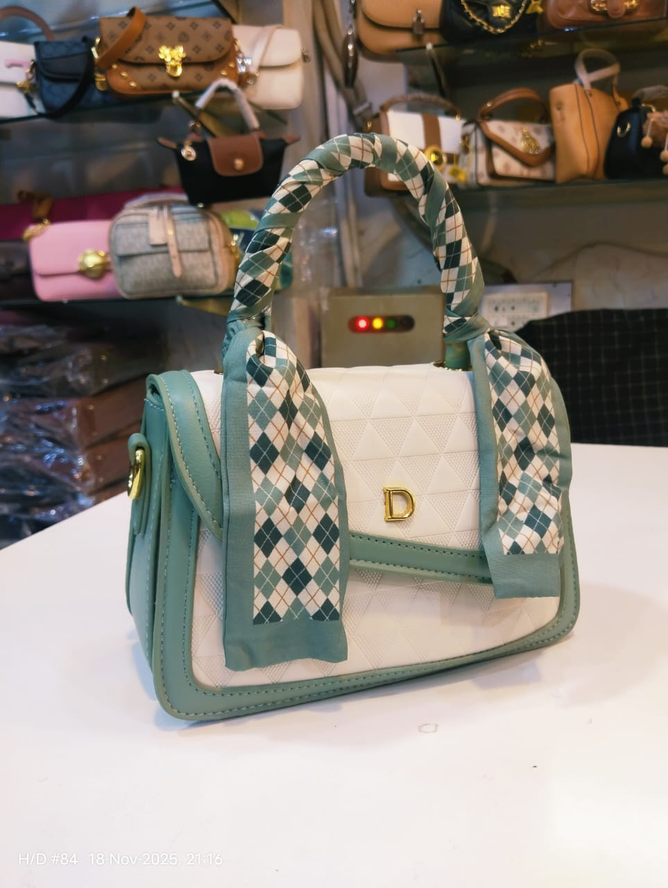 This elegant shoulder bag features a refined quilted pattern and a structured silhouette that adds sophistication to any outfit. Designed with a sturdy top handle and accented with a stylish check-pattern scarf, it blends classic charm with modern fashion. The gold-tone hardware gives it a polished finish, while the spacious interior makes it practical for daily essentials such as a phone, wallet, keys, and makeup.